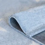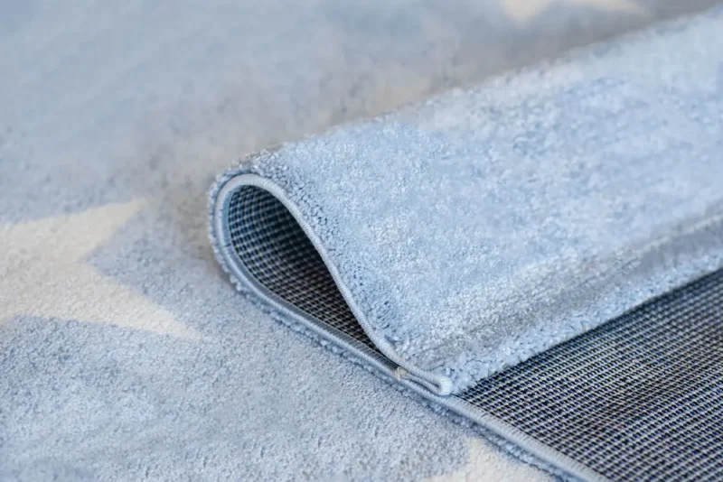 Covorul Polar Bear cu un design încântător, înfățișează un urs polar blând și simpatic, pe un fundal albastru calm, creând o atmosferă relaxantă și plină de magie în mediul copiilor.